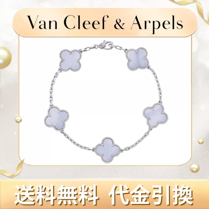ヴィンテージ アルハンブラ ブレスレット、5モチーフ、ホワイトゴールド、カルセドニー